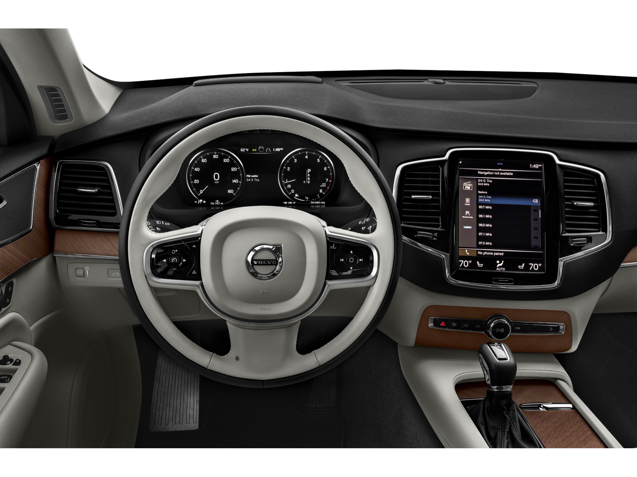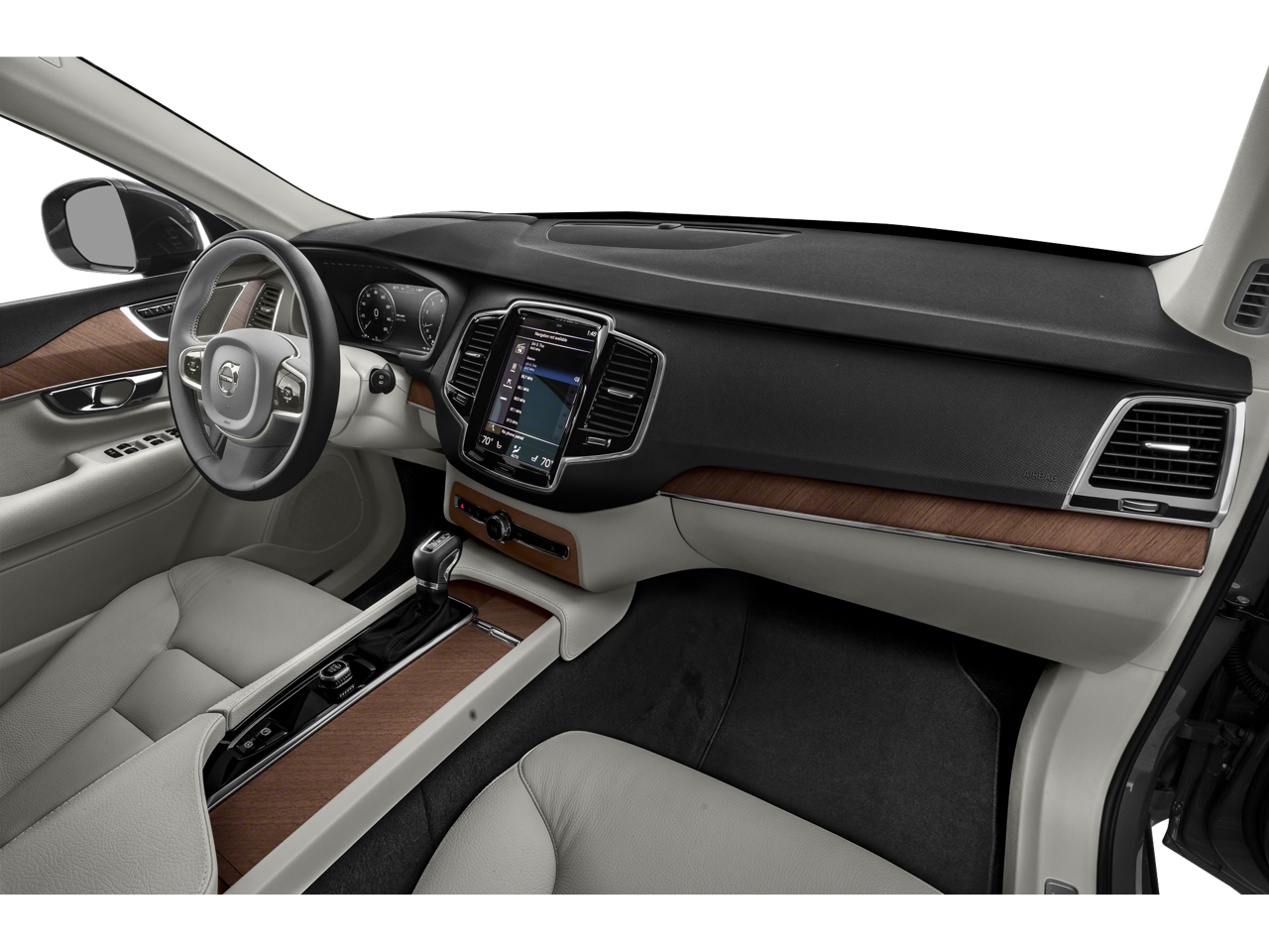 This 2022 Crystal White Metallic Volvo XC90 T5 Momentum AWD is well equipped and includes these features and benefits: Advanced Package (360 Surround View Camera, Air Purifier, Graphical Head-Up Display, and Interior High Level Illumination), Climate Package (Headlight High Pressure Cleaning, Heated Rear Seats, and Heated Steering Wheel), Protection Package Premier (Bumper Cover, Cargo Tray, License Plate Frame, Rubber Floor Mats, and Wheel Locks), XC90 T5 Momentum, AWD, 10 Speakers, 3rd row seats: bucket, 4-Wheel Disc Brakes, ABS brakes, Air Conditioning, Alloy wheels, AM/FM radio: SiriusXM, Anti-whiplash front head restraints, Apple CarPlay/Android Auto, Auto High-beam Headlights, Auto-dimming door mirrors, Auto-dimming Rear-View mirror, Automatic temperature control, Brake assist, Bumpers: body-color, Delay-off headlights, Driver door bin, Driver vanity mirror, Dual front impact airbags, Dual front side impact airbags, Electronic Stability Control, Emergency communication system: Volvo Cars App w/4 Year Subscription, Exterior Parking Camera Rear, Four wheel independent suspension, Front anti-roll bar, Front Bucket Seats, Front Center Armrest w/Storage, Front dual zone A/C, Front fog lights, Front reading lights, Fully automatic headlights, Garage door transmitter: HomeLink, Grocery Bag Holder, harman/kardon Premium Sound, Heated door mirrors, Heated front seats, Illuminated entry, Knee airbag, Leather Shift Knob, Leatherette Upholstery, Low tire pressure warning, Luggage Cover, Memory seat, Navigation system: Sensus Navigation, Occupant sensing airbag, Outside temperature display, Overhead airbag, Panic alarm, Passenger door bin, Passenger vanity mirror, Power door mirrors, Power driver seat, Power moonroof, Power passenger seat, Power steering, Power windows, Premium audio system: Sensus Connect, Radio data system, Radio: High Performance Audio System, Rain sensing wipers, Rear air conditioning, Rear anti-roll bar, Rear dual zone A/C, Rear fog lights, Rear reading lights, Rear seat center armrest, Rear window defroster, Rear window wiper, Remote keyless entry, Security system, Speed control, Speed-sensing steering, Split folding rear seat, Spoiler, Steering wheel mounted audio controls, Tachometer, Telescoping steering wheel, Tilt steering wheel, Traction control, Trip computer, Turn signal indicator mirrors, Variably intermittent wipers, Wheels: 19 6-Spoke Turbine Sparkling Silver Alloy, and Wheels: 20 5-Multi Spoke Matte Graphite Alloy. XC90 T5 Momentum, AWD, 360 Surround View Camera, Advanced Package, Air Purifier, Bumper Cover, Cargo Tray, Climate Package, Graphical Head-Up Display, Headlight High Pressure Cleaning, Heated Rear Seats, Heated Steering Wheel, Interior High Level Illumination, License Plate Frame, Protection Package Premier, Rubber Floor Mats, Wheel Locks.