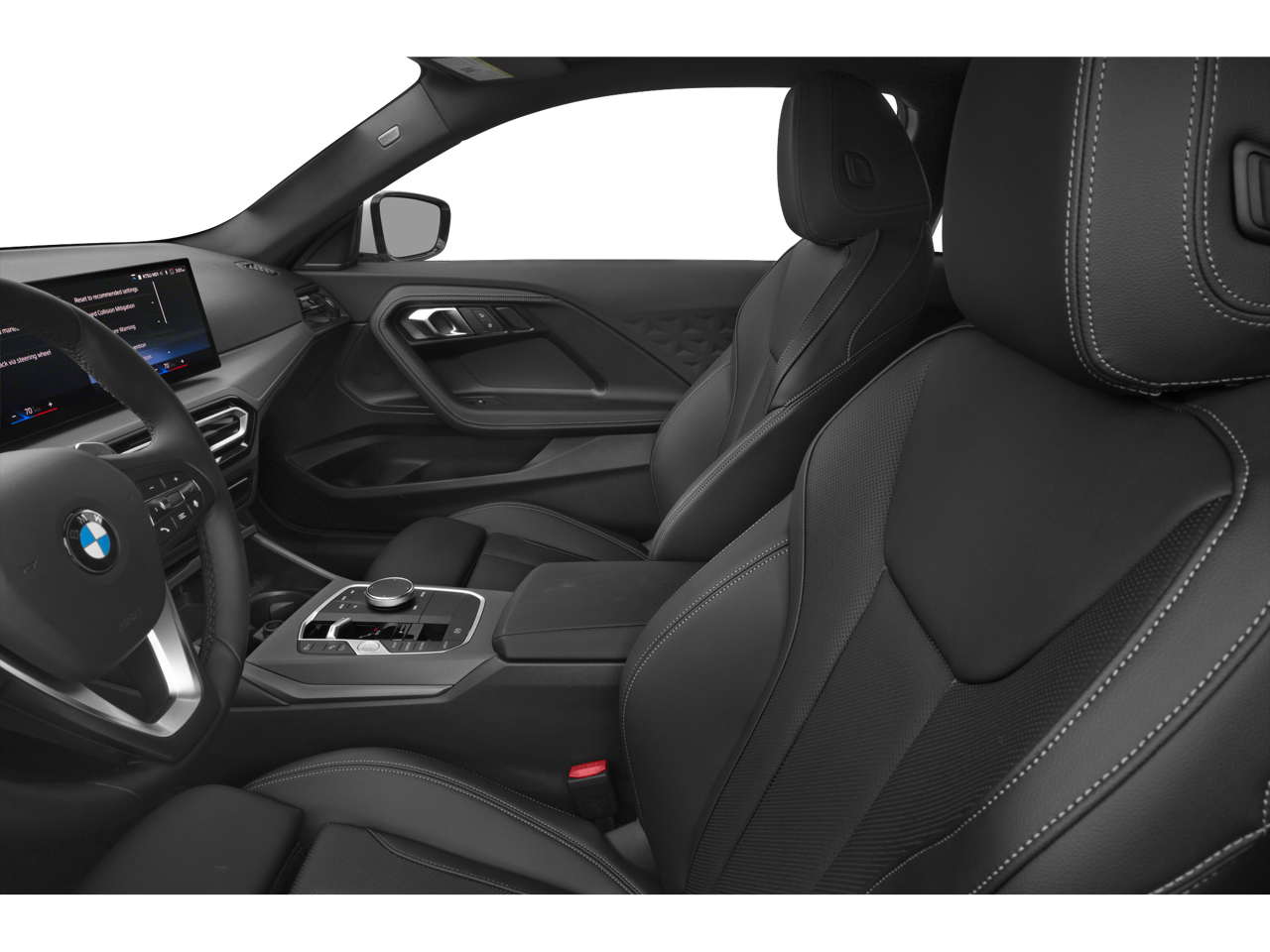 This 2023 Jet Black BMW 2 Series 230i xDrive AWD is well equipped and includes these features and benefits: Convenience Package (Ambient Lighting, Automatic High Beams, Comfort Access Keyless Entry, and Moonroof), Convenience Package (DISC), 2 Series 230i xDrive, AWD, 10 Speakers, 4-Wheel Disc Brakes, ABS brakes, Air Conditioning, Alloy wheels, Aluminum Trim w/Mesh Effect, AM/FM radio: SiriusXM, Apple CarPlay & Android Auto Compatibility, Auto-dimming door mirrors, Auto-dimming Rear-View mirror, Automatic temperature control, BMW Assist eCall, BMW TeleServices, Brake assist, Bumpers: body-color, ConnectedDrive Services, Delay-off headlights, Driver door bin, Driver vanity mirror, Dual front impact airbags, Dual front side impact airbags, Electronic Stability Control, Emergency communication system: BMW Assist eCall, Exterior Parking Camera Rear, Four wheel independent suspension, Front anti-roll bar, Front Bucket Seats, Front Center Armrest, Front dual zone A/C, Front reading lights, Front Sport Seats, Fully automatic headlights, Heated door mirrors, Hi-Fi Sound System, Illuminated entry, Knee airbag, Leather Shift Knob, Low tire pressure warning, Memory seat, Navigation, Navigation System, Occupant sensing airbag, Outside temperature display, Overhead airbag, Panic alarm, Passenger door bin, Passenger vanity mirror, Perforated SensaTec Upholstery, Power door mirrors, Power driver seat, Power Front Seats, Power passenger seat, Power steering, Power windows, Radio data system, Radio: AM/FM Audio System, Rain sensing wipers, Rear air conditioning, Rear anti-roll bar, Rear window defroster, Remote keyless entry, Security system, SiriusXM Satellite Radio, Speed control, Speed-sensing steering, Speed-Sensitive Wipers, Split folding rear seat, Sport steering wheel, Steering wheel mounted audio controls, Tachometer, Telescoping steering wheel, Tilt steering wheel, Traction control, Trip computer, Turn signal indicator mirrors, Variably intermittent wipers, Wheels: 18 x 7.5 V-Spoke Bi-Color (Style 780), Wheels: 19 x 8.0 Y-Spoke Bi-Color (Style 783), and Widescreen Display. 2 Series 230i xDrive, AWD.