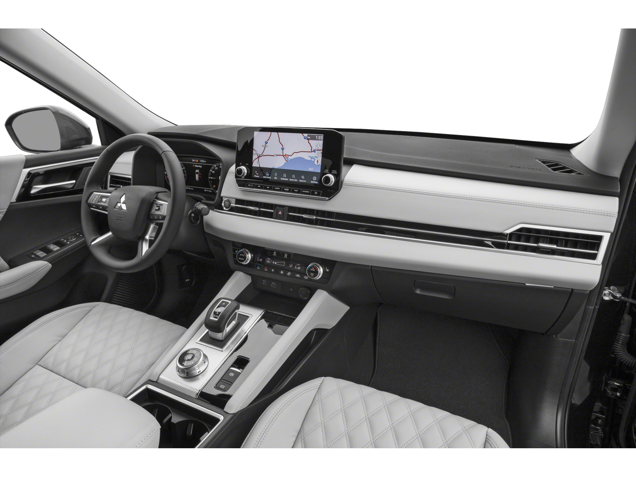 This 2024 Mercury Gray Metallic/Black Roof Mitsubishi Outlander SEL 4WD is well equipped and includes these features and benefits: Premium Package, SEL Premium Package (Semi-Aniline Leather Seat Trim), SEL Touring Package (10.8 Head-Up Display (HUD), Heated Steering Wheel, and Power Panoramic Sunroof), Welcome Package (Carpeted Floor Mats, Paint Pen (Body Color), and Tray Mat), Outlander SEL, 4WD, 3rd row seats: split-bench, 4-Wheel Disc Brakes, 5.694 Axle Ratio, ABS brakes, Air Conditioning, Alloy wheels, AM/FM radio: SiriusXM, Android Auto & Apple CarPlay, Auto High-beam Headlights, Auto-dimming Rear-View mirror, Automatic temperature control, Brake assist, Bumpers: body-color, Driver door bin, Driver vanity mirror, Dual front impact airbags, Dual front side impact airbags, Electronic Stability Control, Emergency communication system: Mitsubishi Connect w/ 24-month trial, Exterior Parking Camera Rear, Four wheel independent suspension, Front anti-roll bar, Front Bucket Seats, Front Center Armrest w/Storage, Front dual zone A/C, Front fog lights, Front reading lights, Fully automatic headlights, Headlight cleaning, Heated door mirrors, Heated Front Bucket Seats, Heated front seats, Heated rear seats, Illuminated entry, Knee airbag, Leather Shift Knob, Leather steering wheel, Low tire pressure warning, Memory seat, Navigation System, Occupant sensing airbag, Outside temperature display, Overhead airbag, Overhead console, Panic alarm, Passenger door bin, Passenger vanity mirror, Power door mirrors, Power driver seat, Power Liftgate, Power passenger seat, Power steering, Power windows, Radio data system, Radio: AM/FM 9.0 Navigation w/Smartphone Link, Rain sensing wipers, Rear air conditioning, Rear anti-roll bar, Rear seat center armrest, Rear side impact airbag, Rear window defroster, Rear window wiper, Reclining 3rd row seat, Remote keyless entry, Security system, Speed control, Speed-Sensitive Wipers, Split folding rear seat, Spoiler, Steering wheel mounted audio controls, Tachometer, Telescoping steering wheel, Tilt steering wheel, Traction control, Trip computer, Turn signal indicator mirrors, and Variably intermittent wipers. Outlander SEL, 4WD, 10.8 Head-Up Display (HUD), Carpeted Floor Mats, Heated Steering Wheel, Paint Pen (Body Color), Power Panoramic Sunroof, Premium Package, SEL Premium Package, SEL Touring Package, Semi-Aniline Leather Seat Trim, Tray Mat, Welcome Package.