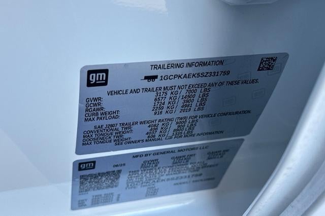 Clean CARFAX. Summit White 2025 Chevrolet Silverado 1500 WT 4WD 8-Speed Automatic 2.7L I4 Turbocharged DOHC 16V LEV3-SULEV30 310hp NON-SMOKER, Backup Camera, Bluetooth®, Light Package, Power Mirror Package, Power Package, Remote Start, Tow Package, Trailer Package, Silverado 1500 WT, 4D Crew Cab, 2.7L I4 Turbocharged DOHC 16V LEV3-SULEV30 310hp, 8-Speed Automatic, 4WD, Summit White, Jet Black w/Cloth Seat Trim, 220 Amp Alternator, 3.42 Rear Axle Ratio, 3.5 Monochromatic Display Driver Info Center, 4-Way Manual Driver Seat Adjuster, 4-Wheel Disc Brakes, 40/20/40 Front Split-Bench Seat, 6 Speakers, 6-Speaker Audio System, ABS brakes, Air Conditioning, Apple CarPlay/Android Auto, Auto High-beam Headlights, Automatic Emergency Braking, Black (Semi-Gloss) Front Bumper, Black (Semi-Gloss) Rear Bumper, Black Manual Outside Mirrors, Bluetooth® For Phone, Brake assist, Compass, Delay-off headlights, Deleted Mobile Service Plus, Driver door bin, Dual front impact airbags, Dual front side impact airbags, Electronic Cruise Control, Electronic Stability Control, Emergency communication system: OnStar, Following Distance Indicator, Forward Collision Alert, Front Center Armrest w/Storage, Front Frame-Mounted Black Recovery Hooks, Front License Plate Kit, Front Pedestrian Braking, Front reading lights, Front wheel independent suspension, Fully automatic headlights, HD Rear Vision Camera, Illuminated entry, Inside Rear-View Mirror w/Tilt, IntelliBeam Automatic High Beam On/Off, Lane Keep Assist w/Lane Departure Warning, Locking Tailgate, Low tire pressure warning, Manual Tailgate Function w/No EZ Lift, Manual Tilt Wheel Steering Column, Occupant sensing airbag, OnStar Services Capable, Outside temperature display, Overhead airbag, Overhead console, Panic alarm, Passenger door bin, Passenger vanity mirror, Power Front Windows w/Driver Express Up/Down, Power Front Windows w/Passenger Express Down, Power Rear Windows w/Express Down, Power steering, Power windows, Preferred Equipment Group 1WT, Premium audio system: Chevrolet Infotainment 3, Radio data system, Radio: Chevrolet Infotainment 3 System, Rear 60/40 Folding Bench Seat (Folds Up), Rear reading lights, Rear step bumper, Remote Keyless Entry, Remote keyless entry, Rubberized-Vinyl Floor Covering, SiriusXM Delete, Solar Absorbing Tinted Glass, Speed control, Speed-sensing steering, Split folding rear seat, Standard Suspension Package, Standard Tailgate, Tachometer, Teen Driver, Tilt steering wheel, Tire Pressure Monitoring System, Traction control, Trip computer, Variably intermittent wipers, Vinyl Seat Trim, Voltmeter, Wheels: 17 x 8 Ultra Silver Painted Steel, Wi-Fi Hot Spot Capable.