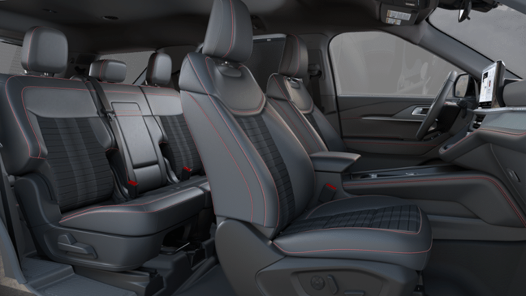 This 2025 Carbonized Gray Metallic Ford Explorer ST-Line 4WD is well equipped and includes these features and benefits: Equipment Group 300A Standard Package, Premium Package (110V/150W AC Power Outlet, 2nd Row Heated Seats, Ambient Lighting, Auto-Dimming Interior Rear-View Mirror, Memory Driver's Seat, Power-Folding Sideview Mirrors w/Autofold, Rain-Sensing Wipers (Front Only), and Wireless Charging Pad), ST-Line Street Pack (Performance Brakes, Red Painted Perf Front & Rear Brake Calipers, and Wheels: 21 Magnetite-Painted Aluminum), Explorer ST-Line, 4WD, 10 Speakers, 3.58 Non-Limited Slip Rear Axle, 3rd row seats: bench, 4-Wheel Disc Brakes, ABS brakes, Air Conditioning, Alloy wheels, AM/FM radio: SiriusXM with 360L, Apple CarPlay/Android Auto, Auto High-beam Headlights, Automatic temperature control, Brake assist, Bumpers: body-color, Compass, Delay-off headlights, Driver door bin, Driver vanity mirror, Dual front impact airbags, Dual front side impact airbags, Electronic Stability Control, Emergency communication system: 911 Assist, Exterior Parking Camera Rear, Four wheel independent suspension, Front anti-roll bar, Front Bucket Seats, Front Center Armrest, Front dual zone A/C, Front fog lights, Front License Plate Bracket, Front reading lights, Fully automatic headlights, Garage door transmitter, Heated door mirrors, Heated front seats, Heated steering wheel, Heated Unique Cloth Captain's Chairs, Illuminated entry, Internet access capable: FordPass Connect 5G, Knee airbag, Leather steering wheel, Low tire pressure warning, Navigation System, Occupant sensing airbag, Outside temperature display, Overhead airbag, Overhead console, Panic alarm, Passenger door bin, Passenger vanity mirror, Power door mirrors, Power driver seat, Power Liftgate, Power passenger seat, Power steering, Power windows, Radio: B&O Sound System by Bang & Olufsen, Rear air conditioning, Rear anti-roll bar, Rear reading lights, Rear window defroster, Rear window wiper, Remote keyless entry, Security system, Speed control, Speed-sensing steering, Speed-Sensitive Wipers, Split folding rear seat, Spoiler, Steering wheel mounted audio controls, Tachometer, Telescoping steering wheel, Tilt steering wheel, Traction control, Trip computer, Variably intermittent wipers, and Wheels: 20 Ebony-Painted Machined Aluminum. previous daily rental/ loaner, Explorer ST-Line, 4WD, 110V/150W AC Power Outlet, 2nd Row Heated Seats, Ambient Lighting, Auto-Dimming Interior Rear-View Mirror, Equipment Group 300A Standard Package, Memory Driver's Seat, Performance Brakes, Power-Folding Sideview Mirrors w/Autofold, Premium Package, Rain-Sensing Wipers (Front Only), Red Painted Perf Front & Rear Brake Calipers, ST-Line Street Pack, Wheels: 21 Magnetite-Painted Aluminum, Wireless Charging Pad.